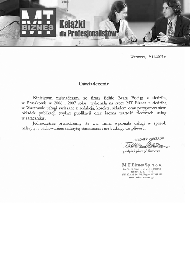 i doświadczenia korzystają wydawnictwa, redakcje czasopism, firmy doradcze oraz klienci indywidualni.