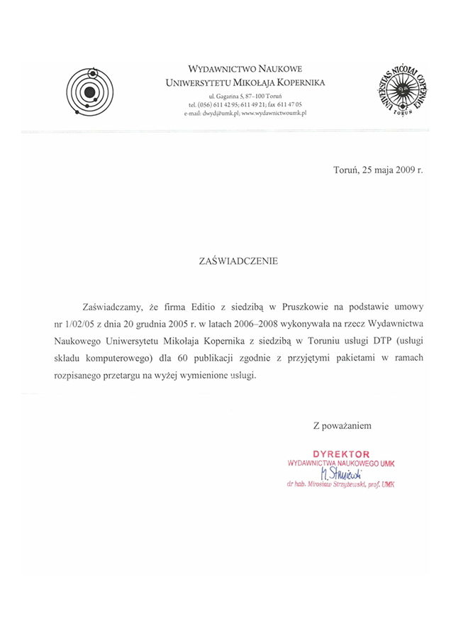 o czym świadczą liczne rekomendacje.Jako studio DTP od wielu lat specjalizujemy